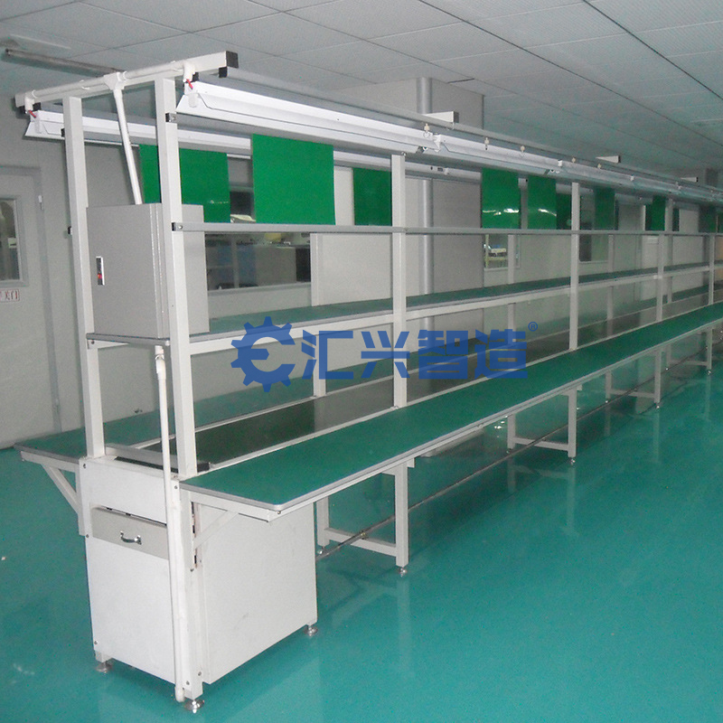皮帶機結構形式有:槽型皮帶機、平型皮帶機、爬坡皮帶機、轉彎皮帶機等多種形式,輸送帶上還可增設提升擋板、裙邊等附件,能滿足各種工藝要求。輸送機兩側配以工作臺、加裝燈架,可作為電子儀表裝配,食品包裝等皮帶機裝配線。