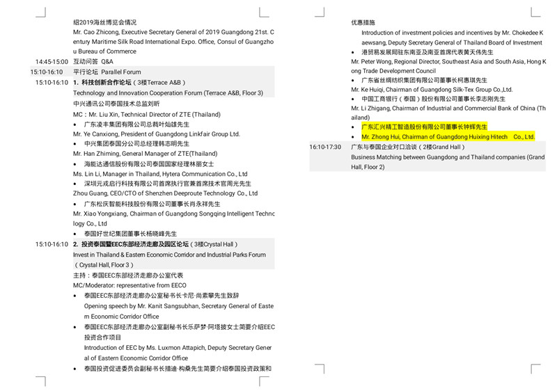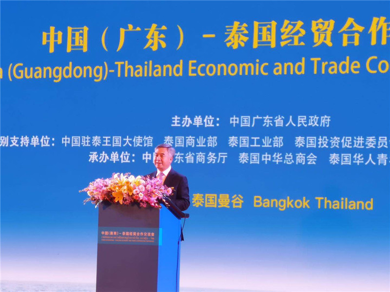 交流會上進行粵港澳大灣區(qū)與泰國合作發(fā)展研討暨廣東省企業(yè)未來發(fā)展計劃介紹,廣東省商務(wù)廳副廳長陳越華先生作主持。廣東省發(fā)展與改革委員會主任、推進粵港澳大灣區(qū)建設(shè)領(lǐng)導(dǎo)小組辦公室主任葛長偉先生帶來《共享粵港澳大灣區(qū)發(fā)展新機遇、推動廣東與泰國合作發(fā)展》的主題分享,珠海格力電器股份有限公司董事長董明珠女士、科大訊飛科大訊飛股份有限公司高級副總裁杜蘭女士介紹企業(yè)未來在泰國合作發(fā)展及投資計劃。交流會還進行《粵港澳大灣區(qū)建設(shè)背景下粵港與泰國合作發(fā)展機遇》研討沙龍環(huán)節(jié),與泰國政商界代表共同探討促進廣東和泰國雙方的交流與合作。