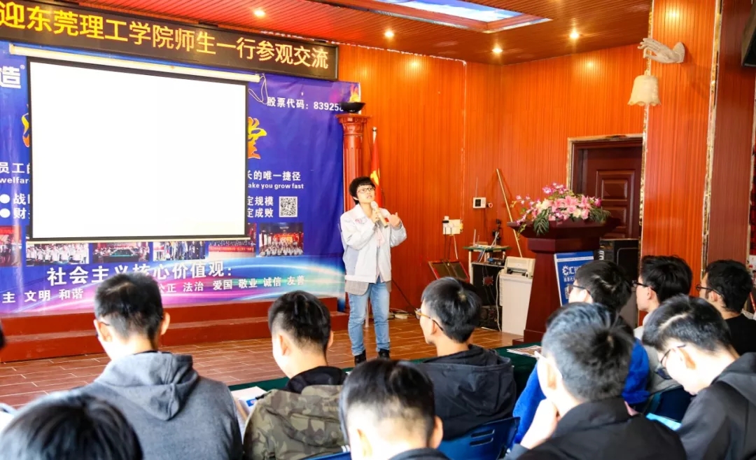 隨后,蔣明華在公司大會議室向師生們詳細(xì)介紹了公司的發(fā)展歷程、產(chǎn)品特點、核心優(yōu)勢、企業(yè)文化、人力資源、員工晉升通道等方面的概況,并熱忱歡迎東莞理工學(xué)院學(xué)子來公司參觀,更歡迎畢業(yè)的大學(xué)生來公司就業(yè)。