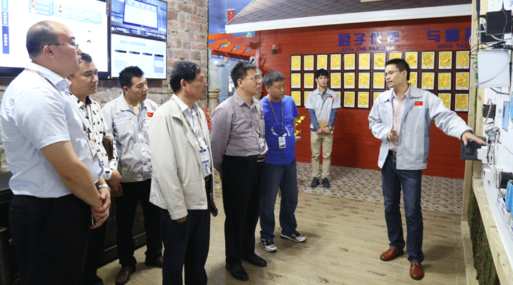 企業文化大使盧錦靚為李董一行講解生產車間智能目視化管理系統