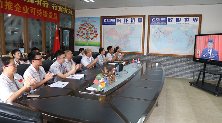 喜迎黨的十九大?共圓小康中國夢—匯興智造組織黨員觀看十九大開幕式