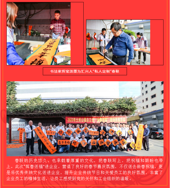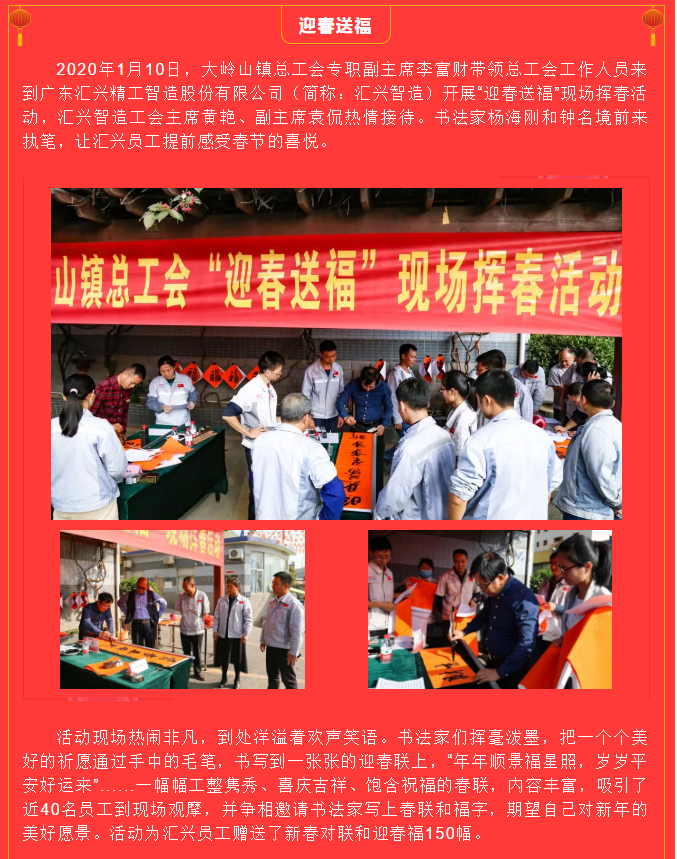 翰墨飄香送春聯,文化進企暖人心——鎮總工會來匯興開展“迎春送福”現場揮春活動